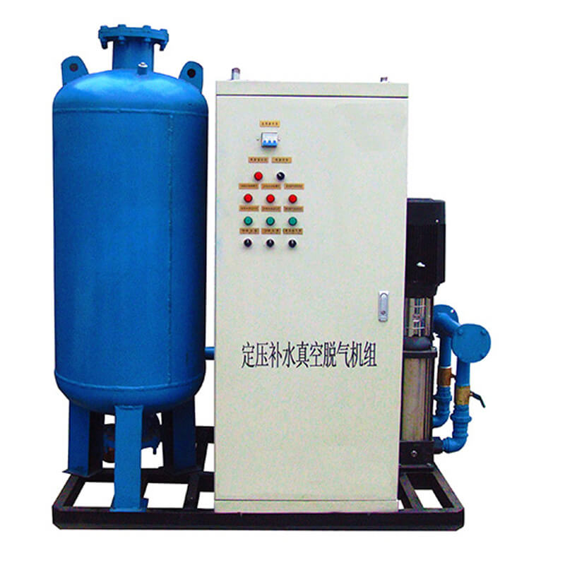 定壓補水脫氣機組是我公司采用先進技術研發的實現集中供熱及空調系統定壓、膨脹、補水、真空脫氣四位一體的新型設備。該設備在系統中起到穩壓、自動補水、膨脹自動泄水,脫除系統內游離氣體及溶解氣體等作用。使系統始終處于環保、節能的運動狀態。 該裝置利用氣壓罐的可調節能力,可自動調節用戶水量的變化,當用水量減少或不用水時,可較長時間不啟動水泵,達到節能目的。 與水塔、高位水箱相比可節省投資約40%—60%。該設備結構緊湊,與其他傳統的供水裝置相比減少了占地面積, 節省了土地資源。本設備全自動運行,無需專人管理,工作可靠。