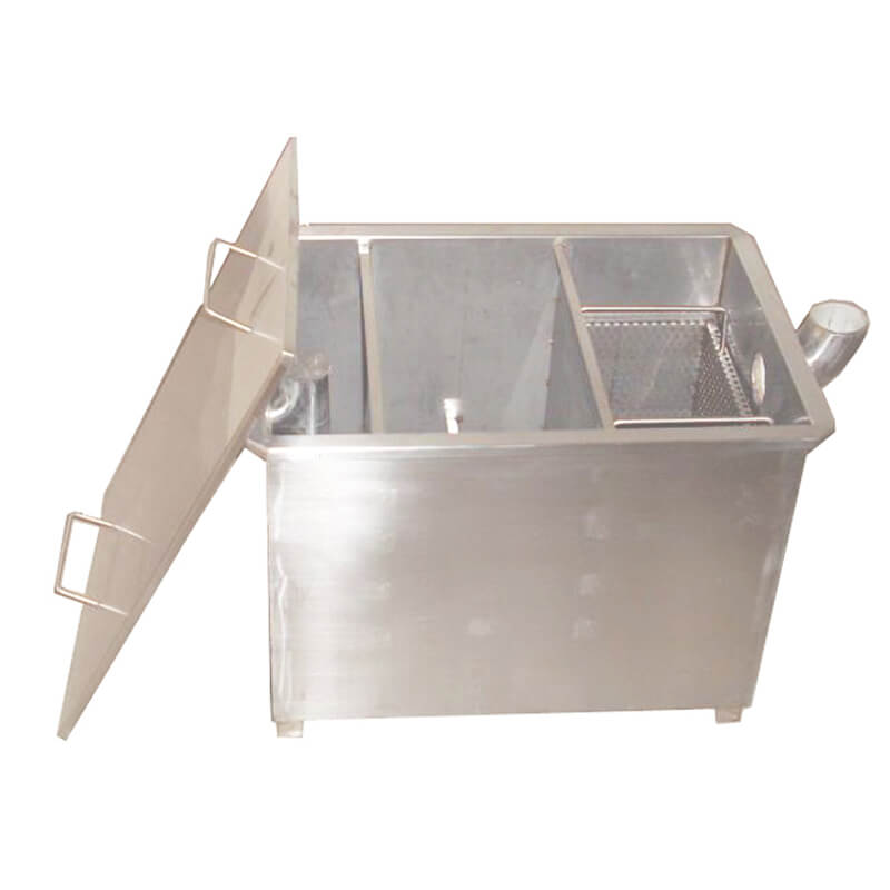 隔油池主要由兩槽'三槽'四槽分別組成,當廚房排水流到第一槽時,雜物框將其中的固體雜物(菜葉等)截流除去,進入第二槽后,利用油水密度差使油水分離。廢水沿第二槽隔油板向下流動,進入第三槽后從物理裝置凈化流出,再經出水管收集排出。第二槽中的油珠顆粒物沿隔油板集聚向上漂浮流動,始終浮在隔油池的第二槽內,經過隔油處理的廢水則溢流入排水渠排出池外,進行后續處理,以去除乳化油及其他污染物。